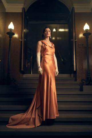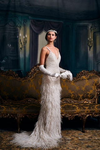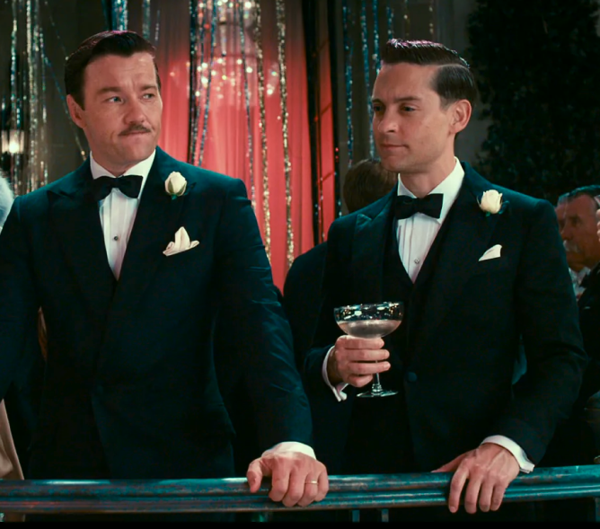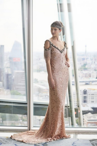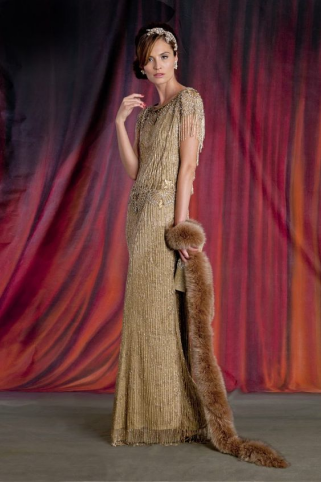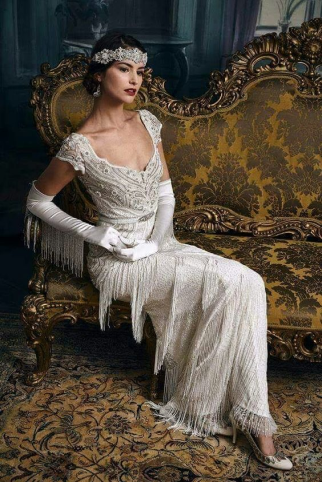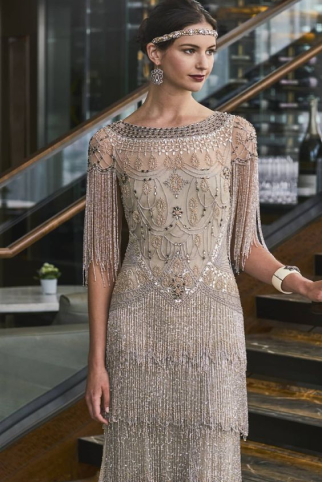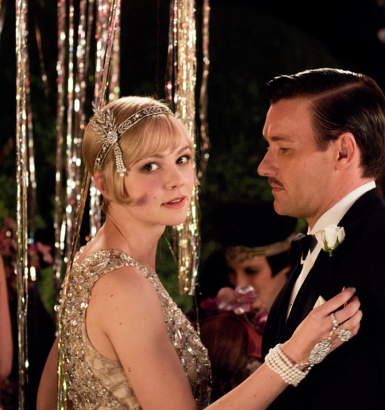 Одежда в стиле «Гэтсби» для женщин создавалась из мягкой текстуры тканей: шелк, атлас, гипюр, шифон. Также использовался бархат и трикотаж, эффектно подчеркивающие фигуру.